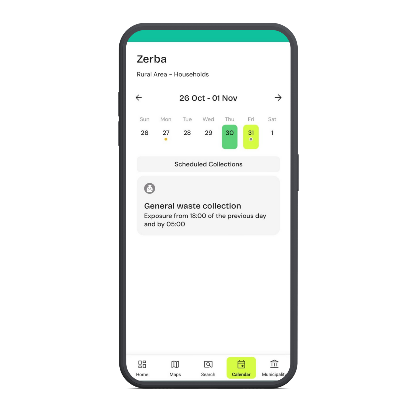 Citizens can see with a tap what is being collected each day, avoiding errors or oversights. The municipality or waste management company can communicate any changes directly to residents, even adjusting the calendar during holidays or in the event of extraordinary needs with direct notifications.